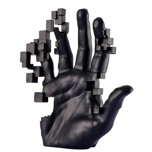 The Pixel Hand Sculpture is a bold artistic statement that merges digital inspiration with sculptural design. Handmade from high-quality resin and finished in matte black, this geometric art piece reimagines the human hand as a fragmented, pixelated form—symbolizing the intersection of technology and humanity. Its abstract silhouette and powerful symbolism make it a captivating decorative object for modern interiors, creative workspaces, or gallery-style displays.