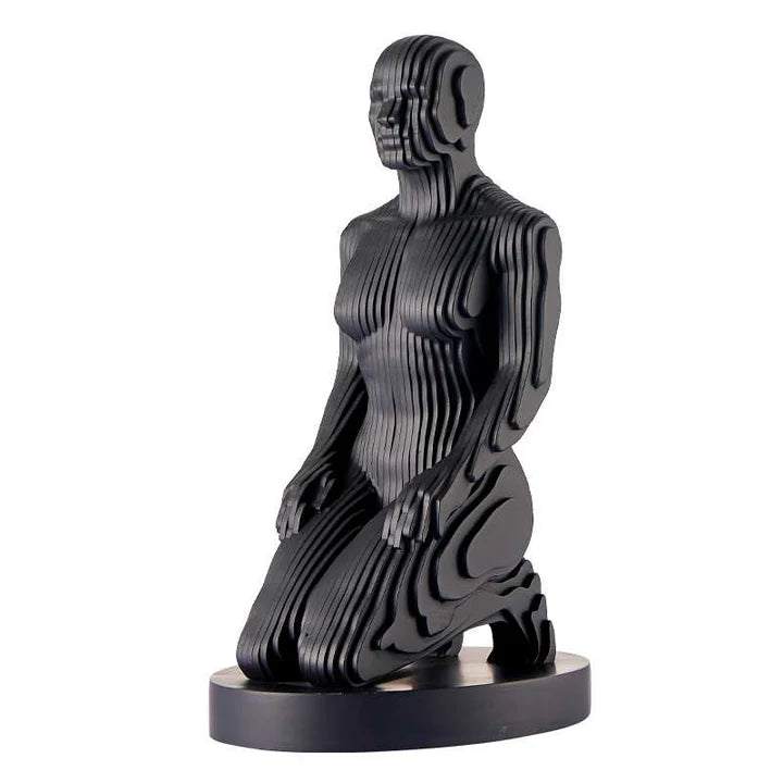 SKU#:The Woman Pixel Sculpture in Matte Black delivers a bold fusion of digital minimalism and timeless human form. Sculpted by hand from durable resin, this abstract kneeling figure features pixel-inspired detailing that evokes movement, depth, and contemporary edge. The matte black finish enhances its sculptural silhouette, creating a dramatic contrast that complements modern, minimalist, or gallery-style interiors. Whether styled on a console, pedestal, or low shelf, it serves as a statement piece with artistic presence.